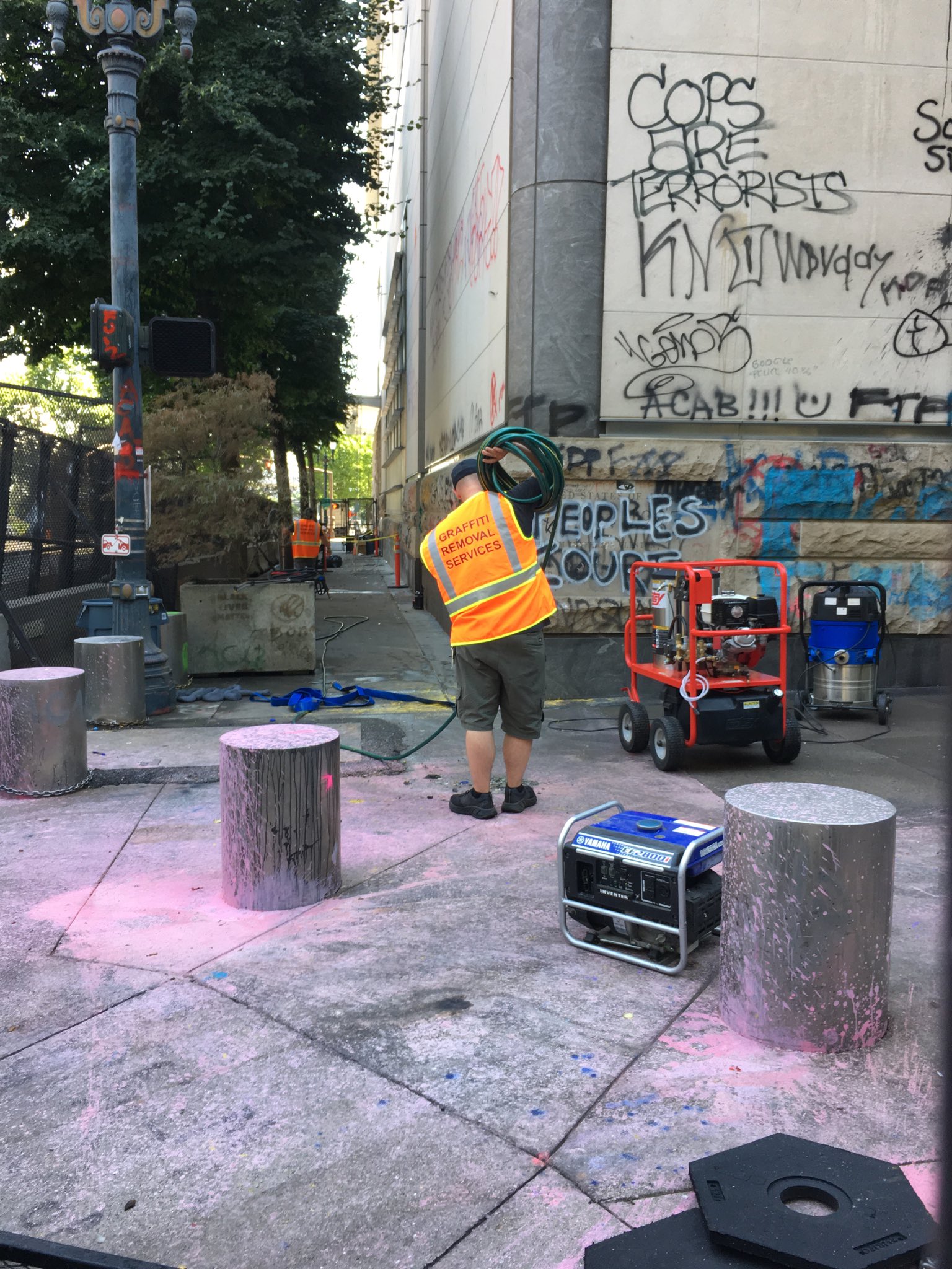 Michael Tracey On Twitter Graffiti Removal Services At Work Outside The Federal Courthouse In Portland Https T Co 8pxieksthg Twitter
